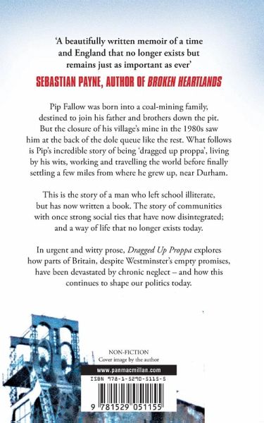 Pip Fallow left school illiterate, prepared only for a life down the mines. This is his story of working class life in northern England, and the country that would leave people like him behind. Dragged Up Proppa marks the arrival of a major literary working class voice that needs to be listened to.