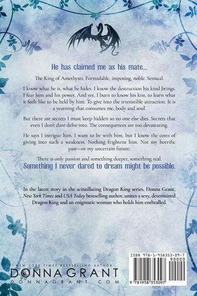 In the latest story in the scintillating Dragon King series, Donna Grant, New York Times and USA Today bestselling author, unites a sexy, determined Dragon King and an enigmatic woman who holds him enthralled. You have to burn before you can rise. Handsome. Commanding. Powerful. Alasdair isn't a Dragon King to sit and wait. His carefully laid plans dissolve when he comes upon an enchanting woman. Lotti's beauty beguiles him, her spirit intrigues him. The longer he's with her, the more mysteries he uncovers. And the more his passion grows. He never expects she will lead him into the heart of Stonemore -while ensnaring his at the same time. With their enemies closing in, Alasdair will do anything to protect the woman he's destined to love. If there's one thing Lotti knows, it's that she's a danger to others. She keeps her distance. Always. But all that changes when she lands in a difficult situation...with a gorgeous, seductive man. Every choice somehow leads her straight back to Alasdair. She can't ignore his sexual magnetism or the undeniable desire between them. Their journey unravels everything she knew about herself to reveal a carefully constructed fallacy. Yet, she discovers an inner strength she didn't know she had. But is her yearning for Alasdair worth the risk for them both?