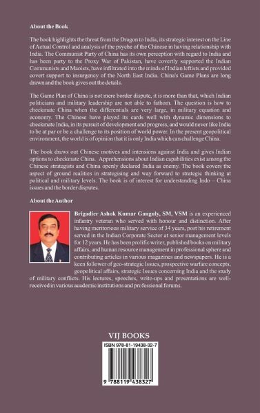 The book highlights the threat from the Dragon to India, its strategic interest on the Line of Actual Control and analysis of the psyche of the Chinese in having relationship with India. The Communist Party of China has its own perception with regard to India and has been party to the Proxy War of Pakistan, have covertly supported the Indian Communists and Maoists, have infiltrated into the minds of Indian leftists and provided covert support to insurgency of North East India. China's Game Plans are long drawn and the book gives out the details. The Game Plan of China is not a mere border dispute; it is more than that, which Indian politicians and military leadership are not able to fathom. The question is how to checkmate China when the differentials are very large, in military equation and economy. The Chinese have played its cards well with dynamic dimensions to checkmate India in its pursuit of development and progress, and would never like India to be at par or be a challenge to its position of world power. In the present geopolitical environment, the world is of opinion that it is only India which can challenge China. The book draws out Chinese motives and intensions against India and gives Indian options to checkmate China. Apprehensions about Indian capabilities exist among the Chinese strategists and China openly declared India as enemy. The book covers the aspect of ground realities in strategising and way forward to strategic thinking at political and military levels. The book is of interest for understanding Indo - China issues and the border disputes.