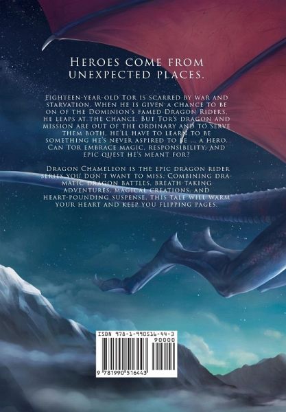 Heroes come from unexpected places. Eighteen-year-old Tor is scarred by war and starvation. When he is given a chance to be on of the Dominion's famed Dragon Riders, he leaps at the chance. But Tor's dragon and mission are out of the ordinary and to serve them both, he'll have to learn to be something he's never aspired to be ... a hero. Can Tor embrace magic, responsibility, and epic quest he's meant for? Dragon Chameleon is the epic dragon rider series you don't want to miss. Combining dramatic dragon battles, breath-taking adventures, magical creations, and heart-pounding suspense, this tale will warm your heart and keep you flipping pages. This volume contains the complete series of twelve novellas.