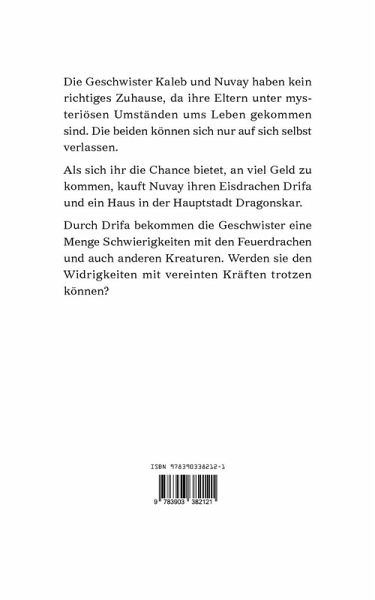 Die Geschwister Kaleb und Nuvay haben kein richtiges Zuhause, da ihre Eltern unter mysteriösen Umständen ums Leben gekommen sind. Die beiden können sich nur auf sich selbst verlassen.Als sich ihr die Chance bietet, an viel Geld zu kommen, kauft Nuvay ihren Eisdrachen Drifa und ein Haus in der Hauptstadt Dragonskar. Durch Drifa bekommen die Geschwister eine Menge Schwierigkeiten mit den Feuerdrachen und auch anderen Kreaturen. Werden sie den Widrigkeiten mit vereinten Kräften trotzen können?
