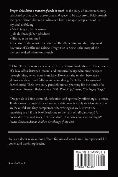 Dragon de la Seine; a memoire of souls in touch, is the story of an extraordinary relationship that called across time and space to be expressed. Told through the eyes of three characters who each have a unique perspective of its mystical unfolding- ¿ Abel Dragon, by his nature ¿ Jala'ah, through her giftedness ¿ Hiram, as an anointed Reflective of the mystical wisdom of The Alchemist, and the antiphonal discourse of Griffin and Sabine, Dragon de la Seine is the story of the mystery evoked when souls touch.
