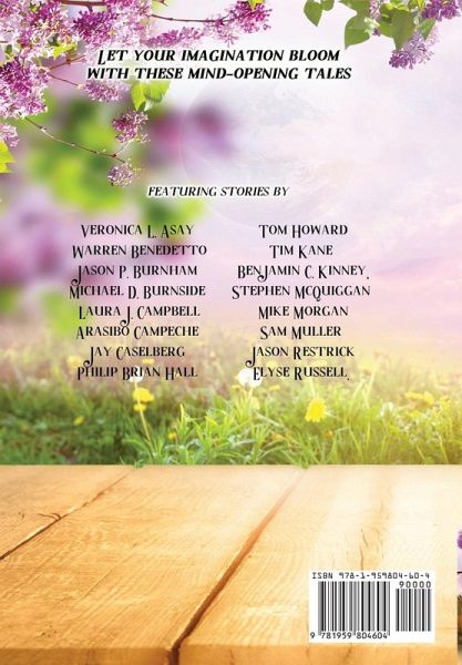 Let your imagination bloom with these mind-opening tales Featuring stories by Veronica L. Asay, Warren Benedetto, Jason P. Burnham, Michael D. Burnside, Laura J. Campbell, Arasibo Campeche, Jay Caselberg, Philip Brian Hall, Tom Howard, Tim Kane, Benjamin C. Kinney, Stephen McQuiggan, Mike Morgan, Sam Muller, Jason Restrick, and Elyse Russell.