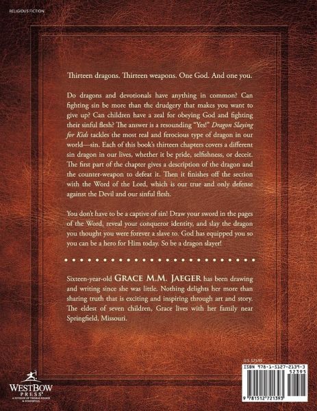 Thirteen dragons. Thirteen weapons. One God. And one you. Do dragons and devotionals have anything in common? Can fighting sin be more than the drudgery that makes you want to give up? Can children have a zeal for obeying God and fighting their sinful flesh? The answer is a resounding "Yes!" Dragon Slaying for Kids tackles the most real and ferocious type of dragon in our world-sin. Each of this book's thirteen chapters covers a different sin dragon in our lives, whether it be pride, selfishness, or deceit. The first part of the chapter gives a description of the dragon and the counter-weapon to defeat it. Then it finishes off the section with the Word of the Lord, which is our true and only defense against the Devil and our sinful flesh. You don't have to be a captive of sin! Draw your sword in the pages of the Word, reveal your conqueror identity, and slay the dragon you thought you were forever a slave to. God has equipped you so you can be a hero for Him today. So be a dragon slayer!