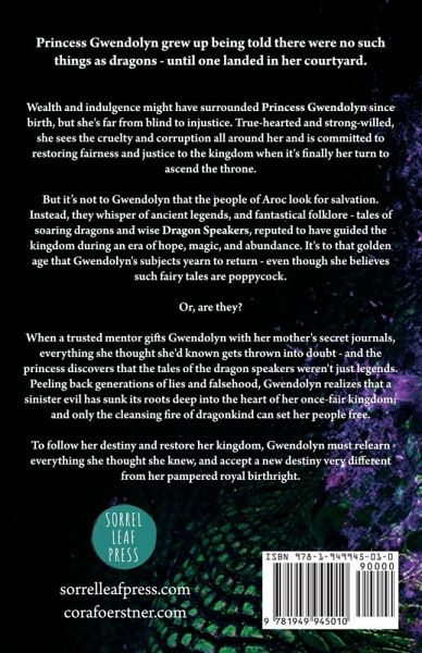 Princess Gwendolyn grew up being told there were no such things as dragons - then one landed in her courtyard. Wealth and indulgence might have surrounded Princess Gwendolyn since birth, but she's far from blind to injustice. True-hearted and strong-willed, she sees the cruelty and corruption all around her and is committed to restoring fairness and justice to the kingdom when it's finally her turn to ascend the throne. But it's not to Gwendolyn that the people of Aroc look for salvation. Instead, they whisper of ancient legends, and fantastical folklore - tales of soaring dragons and wise Dragon Speakers, reputed to have guided the kingdom during an era of hope, magic, and abundance. It's to that golden age that Gwendolyn's subjects yearn to return - even though she believes such fairy tales are poppycock. Or, are they? When a trusted mentor gifts Gwendolyn with her mother's secret journals, everything she thought she'd known gets thrown into doubt - and the princess discovers that the tales of the dragon speakers weren't just legends. Peeling back generations of lies and falsehood, Gwendolyn realizes that a sinister evil has sunk its roots deep into the heart of her once-fair kingdom; and only the cleansing fire of dragonkind can set her people free. To follow her destiny and restore her kingdom, Gwendolyn must relearn everything she thought she knew, and accept a new destiny.
