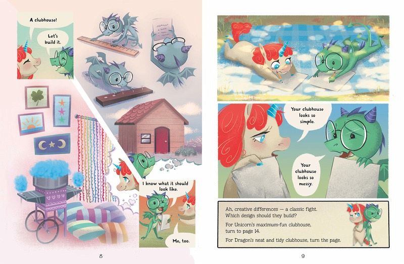 In this unique, interactive graphic novel, early readers learn how to make good choices - and even choose what the characters do next! Dragon and Unicorn are best friends who agree on everything. Well, almost everything. Dragon likes to follow the rules, while Unicorn is more of a free spirit, so sometimes they fight. Luckily, in these three stories, whenever the friends disagree, the reader gets to choose what happens next. Each choice leads to a different outcome, and at the end of the story, the reader can start again and choose a whole new storyline! Bestselling author P. J. Hoover lets readers drive the action in these short stories. The two characters are funny and relatable as they argue about clubhouse rules and what to do at a sleepover. As young readers consider the best way to deal with the interpersonal conflicts, they'll gain important social and relationship skills. Playful art by Lisa Wiley perfectly showcases the emotional drama in the stories. Strong curriculum ties to social-emotional learning, conflict resolution, and story writing combine with excellent character-education lessons in cooperation, empathy, honesty and teamwork in a totally immersive interactive package.