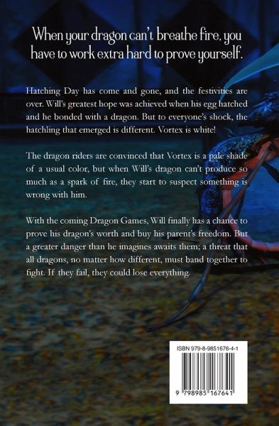 When your dragon can't breathe fire, you have to work extra hard to prove yourself. Hatching Day has come and gone, and the festivities are over. Will's greatest hope was achieved when his egg hatched and he bonded with a dragon. But to everyone's shock, the hatchling that emerged is different. Vortex is white! The dragon riders are convinced that Vortex is a pale shade of a usual color, but when Will's dragon can't produce so much as a spark of fire, they start to suspect something is wrong with him. With the coming Dragon Games, Will finally has a chance to prove his dragon's worth and buy his parent's freedom. But a greater danger than he imagines awaits them; a threat that all dragons, no matter how different, must band together to fight. If they fail, they could lose everything.