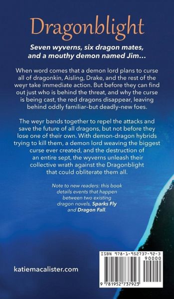 Seven wyverns, six dragon mates, and a mouthy demon named Jim... When word comes that a demon lord plans to curse all of dragonkin, Aisling, Drake, and the rest of the weyr take immediate action. But before they can find out just who is behind the threat, and why the curse is being cast, the red dragons disappear, leaving behind oddly familiar-but deadly-new foes. The weyr bands together to repel the attacks and save the future of all dragons, but not before they lose one of their own. With demon-dragon hybrids trying to kill them, a demon lord weaving the biggest curse ever created, and the destruction of an entire sept, the wyverns unleash their collective wrath against the Dragonblight that could obliterate them all. Note to new readers: this book details events that happen between two existing dragon novels, Sparks Fly and Dragon Fall.