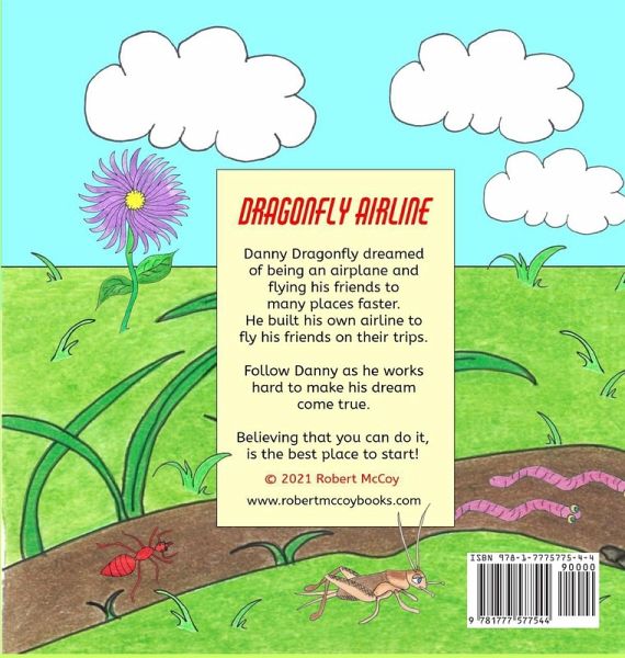 Danny Dragonfly dreamed of being an airplane and flying his friends to many places faster. He built his own airline to fly his friends on their trips. Follow Danny as he works hard to make his dream come true. Believing that you can do it, is the best place to start!