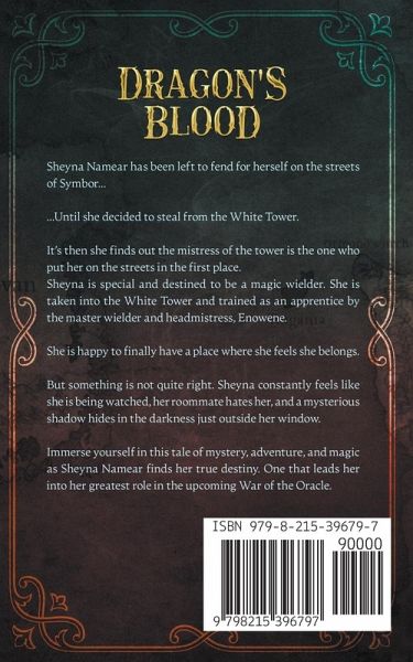 Sheyna Namear has been left to fend for herself on the streets of Symbor... ...Until she decided to steal from the White Tower. It's then she finds out the mistress of the tower is the one who put her on the streets in the first place. Sheyna is special and destined to be a magic wielder. She is taken into the White Tower and trained as an apprentice by the master wielder and headmistress, Enowene. She is happy to finally have a place where she feels she belongs. But something is not quite right. Sheyna constantly feels like she is being watched, her roommate hates her, and a mysterious shadow hides in the darkness just outside her window. Immerse yourself in this tale of mystery, adventure, and magic as Sheyna Namear finds her true destiny. One that leads her into her greatest role in the upcoming War of the Oracle.