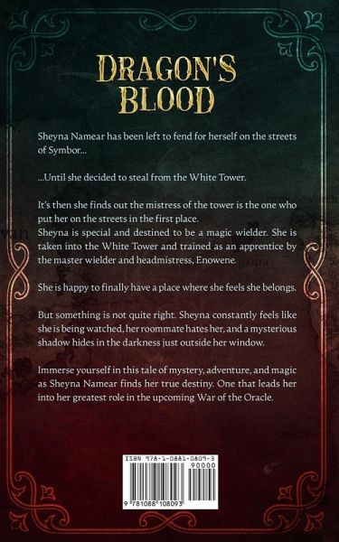 Sheyna Namear has been left to fend for herself on the streets of Symbor... ...Until she decided to steal from the White Tower. It's then she finds out the mistress of the tower is the one who put her on the streets in the first place. Sheyna is special and destined to be a magic wielder. She is taken into the White Tower and trained as an apprentice by the master wielder and headmistress, Enowene. She is happy to finally have a place where she feels she belongs. But something is not quite right. Sheyna constantly feels like she is being watched, her roommate hates her, and a mysterious shadow hides in the darkness just outside her window. Immerse yourself in this tale of mystery, adventure, and magic as Sheyna Namear finds her true destiny. One that leads her into her greatest role in the upcoming War of the Oracle.