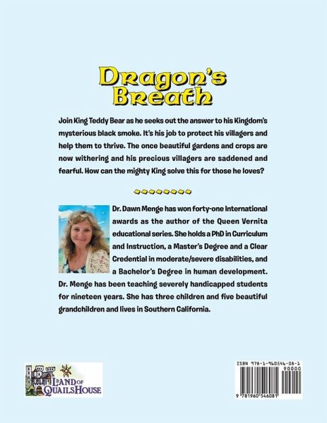 Dr. Dawn Menge has won forty-one International awards as the author of the Queen Vernita educational series. She holds a PhD in Curriculum and Instruction, a Master's Degree and a Clear Credential in moderate/severe disabilities, and a Bachelor's Degree in human development. Dr. Menge has been teaching severely handicapped students for nineteen years. She has three children and five beautiful grandchildren and lives in Southern California.