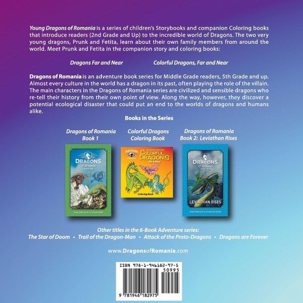 A picture storybook teaching diversity for the younger children and fans of the Dragon's of Romania book series. Two very young dragons Prunk and Fetita are being taught by Vladimir about the very different types of dragons in the world and how it takes all types of dragons to make the world interesting and unique.
