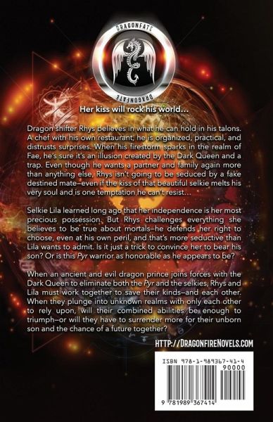 Her kiss will rock his world... Dragon shifter Rhys believes in what he can hold in his talons. A chef with his own restaurant, he is organized, practical, and distrusts surprises. When his firestorm sparks in the realm of Fae, he's sure it's an illusion created by the Dark Queen and a trap. Even though he wants a partner and family again more than anything else, Rhys isn't going to be seduced by a fake destined mate-even if the kiss of that beautiful selkie melts his very soul and is one temptation he can't resist... Selkie Lila learned long ago that her independence is her most precious possession. But Rhys challenges everything she believes to be true about mortals-he defends her right to choose, even at his own peril, and that's more seductive than Lila wants to admit. Is it just a trick to convince her to bear his son? Or is this Pyr warrior as honorable as he appears to be? When an ancient and evil dragon prince joins forces with the Dark Queen to eliminate both the Pyr and the selkies, Rhys and Lila must work together to save their kinds-and each other. When they plunge into unknown realms with only each other to rely upon, will their combined abilities be enough to triumph-or will they have to surrender more for their unborn son and the chance of a future together?