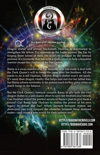 Her kiss will shatter realms... Dragon shifter and artisan blacksmith Hadrian is determined to strengthen his fellow Pyr warriors in the battle against the Fae by forging them talons of steel. He won't be seduced by the sensual promise of a firestorm that has to be a spell-even to help a beautiful warrior escape the clutches of the Fae Queen. Rania is a swan-maiden and Fae assassin, who has made a deal with the Dark Queen's will to break the curse over her brothers. All she needs to do is kill Hadrian, but this dragon shifter won't die easily. It's more than dragon vitality that helps him survive her lethal kiss, but Rania refuses surrender to his potent touch for any price when so much hangs in the balance. But the Dark Queen's betrayal compels Rania to ally with the vital dragon shifter in a last-chance effort to save her brothers and herself. Can Hadrian unfurl the painful secrets of Rania's past to give them a future? Can Rania help Hadrian to realize the power of his own legacy to defeat the Fae? When barriers between realms are destroyed, can love conquer the obstacles between these destined mates-and create a new world for their unborn son?