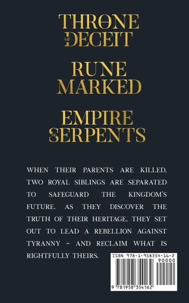 Two souls, one destiny. When their parents are killed, two royal siblings are separated to safeguard the kingdom's future. As they discover the truth of their heritage, they set out to lead a rebellion against tyranny - and reclaim what is rightfully theirs. This fantasy series bundle includes all 3 books of the trilogy. Throne of Deceit Rune Marked Empire of Serpents One click now to read this young adult fantasy adventure!