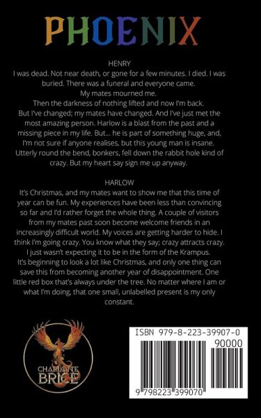 HENRY I was dead. Not near death, or gone for a few minutes. I died. I was buried. There was a funeral and everyone came. My mates mourned me. Then the darkness of nothing lifted and now I'm back. But I've changed; my mates have changed. And I've just met the most amazing person. Harlow is a blast from the past and a missing piece in my life. But... he is part of something huge, and, I'm not sure if anyone realises, but this young man is insane. Utterly round the bend, bonkers, fell down the rabbit hole kind of crazy. But my heart say sign me up anyway. HARLOW It's Christmas, and my mates want to show me that this time of year can be fun. My experiences have been less than convincing so far and I'd rather forget the whole thing. A couple of visitors from my mates past soon become welcome friends in an increasingly difficult world. My voices are getting harder to hide. I think I'm going crazy. You know what they say; crazy attracts crazy. I just wasn't expecting it to be in the form of the Krampus. It's beginning to look a lot like Christmas, and only one thing can save this from becoming another year of disappointment. One little red box that's always under the tree. No matter where I am or what I'm doing, that one small, unlabelled present is my only constant. This book is for over 18s due to scenes of a graphic nature, and dealing with mental health issues.