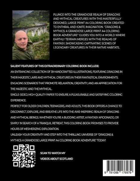 Dive into an awe-inspiring cosmos teeming with magic and mystery in "Dragons & Mythics: A Grandiose Large Print A4 Coloring Book Adventure"! This remarkable coloring book welcomes kids of an older age, teens, and adults to appreciate and revel in the entrancing allure of legendary dragons and mythical creatures. Key Features:39 meticulously handcrafted, large print A4 illustrations, presenting dragons in their majestic lairs and mythical creatures in their fantastical habitats. Appropriate for older kids, teens, and adults alike, promising endless hours of relaxation and creative expression. Printed on single-sided pages to avoid bleed-through and to allow effortless removal for framing or display. Superior-quality paper, perfectly suited for colouring with coloured pencils, markers, or crayons. From formidable dragons safeguarding their priceless treasures atop towering mountains to whimsical creatures spreading enchantment in mystical woods, "Dragons & Mythics: A Grandiose Large Print A4 Coloring Book Adventure" unveils a diverse spectrum of thrilling scenarios that illuminate the splendour and mystery of these awe-inspiring creatures. This colouring book serves as an ideal gift for birthdays, holidays, or as a delightful surprise for any aspiring artist or fantasy lover. Spark their creativity, stir their imagination, and invite them to immerse themselves in the thrilling realm of dragons and mythical beasts. Seize your copy of "Dragons & Mythics: A Grandiose Large Print A4 Coloring Book" now, and let the thrilling world of dragons and mythical creatures spring to life on every page!