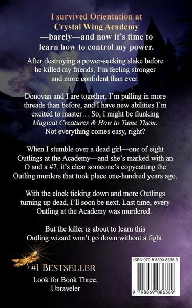 I survived Orientation at Crystal Wing Academy-barely-and now it's time to learn how to control my power. After destroying a power-sucking slake before he killed my friends, I'm feeling stronger and more confident than ever. Donovan and I are together, I'm pulling in more threads than before, and I have new abilities I'm excited to master... So, I might be flunking Magical Creatures & How to Tame Them. Not everything comes easy, right? When I stumble over a dead girl-one of eight Outlings at the Academy-and she's marked with an O and a #7, it's clear someone's copycatting the Outling murders that took place one hundred years ago. With the clock ticking down and more Outlings turning up dead, I'll soon be next. Last time, every Outling at the Academy was murdered. But the killer is about to learn this Outling wizard won't go down without a fight.