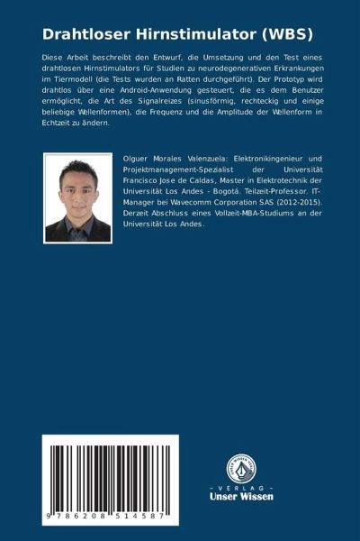 Diese Arbeit beschreibt den Entwurf, die Umsetzung und den Test eines drahtlosen Hirnstimulators für Studien zu neurodegenerativen Erkrankungen im Tiermodell (die Tests wurden an Ratten durchgeführt). Der Prototyp wird drahtlos über eine Android-Anwendung gesteuert, die es dem Benutzer ermöglicht, die Art des Signalreizes (sinusförmig, rechteckig und einige beliebige Wellenformen), die Frequenz und die Amplitude der Wellenform in Echtzeit zu ändern.