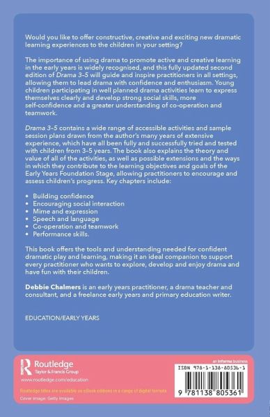 Would you like to offer constructive, creative and exciting new dramatic learning experiences to the children in your setting? The importance of using drama to promote active and creative learning in the early years is widely recognised, and this fully updated second edition of Drama 3-5 will guide and inspire practitioners in all settings, allowing them to lead drama with confidence and enthusiasm. Young children participating in well planned drama activities learn to express themselves clearly and develop strong social skills, more self-confidence and a greater understanding of co-operation and team-work. Drama 3-5 contains a wide range of accessible activities and sample session plans, drawn from the author's many years of extensive experience, which have all been fully and successfully tried and tested with children from 3-5 years. The book also explains the theory and value of all of the activities, as well as possible extensions and the ways in which they contribute to the learning objectives and goals of the Early Years Foundation Stage, allowing practitioners to encourage and assess children's progress. Key chapters include: Building confidence Encouraging social interaction Mime and expression Speech and language Co-operation and teamwork Performance skills¿ This book offers the tools and understanding needed for confident dramatic play and learning, making it an ideal companion to support every practitioner who wants to explore, develop and enjoy drama and have fun with their children.