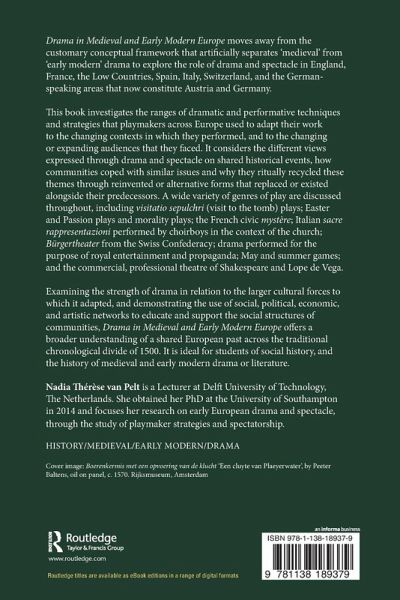 Drama in Medieval and Early Modern Europe moves away from the customary conceptual framework that artificially separates 'medieval' from 'early modern' drama to explore the role of drama and spectacle in England, France, the Low Countries, Spain, Italy, Switzerland, and the German-speaking areas that now constitute Austria and Germany. This book investigates the ranges of dramatic and performative techniques and strategies that playmakers across Europe used to adapt their work to the changing contexts in which they performed, and to the changing or expanding audiences that they faced. It considers the different views expressed through drama and spectacle on shared historical events, how communities coped with similar issues and why they ritually recycled these themes through reinvented or alternative forms that replaced or existed alongside their predecessors. A wide variety of genres of play are discussed throughout, including visitatio sepulchri (visit to the tomb) plays; Easter and Passion plays and morality plays; the French civic mystère; Italian sacre rappresentazioni performed by choirboys in the context of the church; Bürgertheater from the Swiss Confederacy; drama performed for the purpose of royal entertainment and propaganda; May and summer games; and the commercial, professional theatre of Shakespeare and Lope de Vega. Examining the strength of drama in relation to the larger cultural forces to which it adapted, and demonstrating the use of social, political, economic, and artistic networks to educate and support the social structures of communities, Drama in Medieval and Early Modern Europe offers a broader understanding of a shared European past across the traditional chronological divide of 1500. It is ideal for students of social history, and the history of medieval and early modern drama or literature.