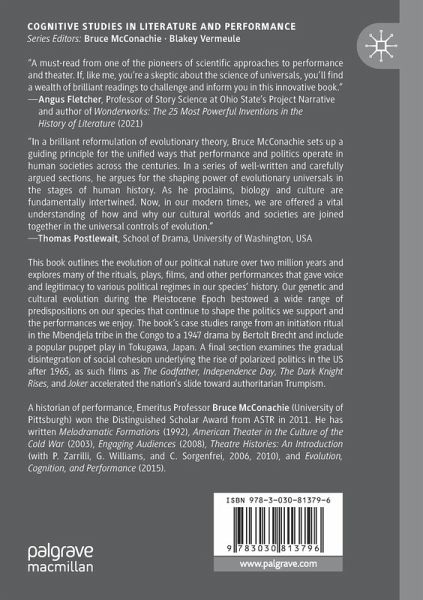 This book outlines the evolution of our political nature over two million years and explores many of the rituals, plays, films, and other performances that gave voice and legitimacy to various political regimes in our species' history. Our genetic and cultural evolution during the Pleistocene Epoch bestowed a wide range of predispositions on our species that continue to shape the politics we support and the performances we enjoy. The book's case studies range from an initiation ritual in the Mbendjela tribe in the Congo to a 1947 drama by Bertolt Brecht and include a popular puppet play in Tokugawa Japan. A final section examines the gradual disintegration of social cohesion underlying the rise of polarized politics in the USA after 1965, as such films as The Godfather, Independence Day, The Dark Knight Rises, and Joker accelerated the nation's slide toward authoritarian Trumpism.