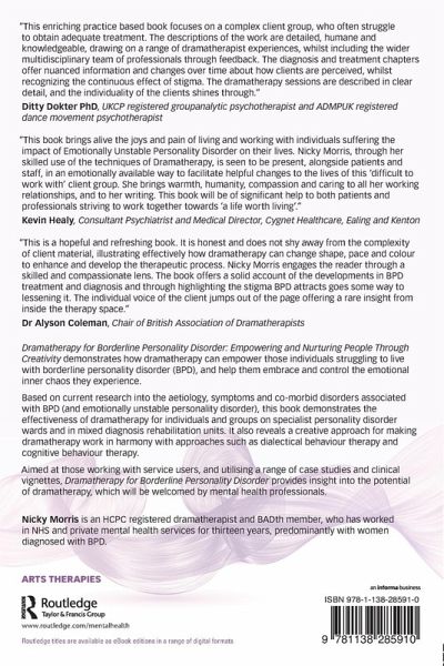 Dramatherapy for Borderline Personality Disorder: Empowering and Nurturing People Through Creativity demonstrates how dramatherapy can empower those individuals struggling to live with Borderline Personality Disorder, and help them embrace and control the emotional inner chaos they experience.