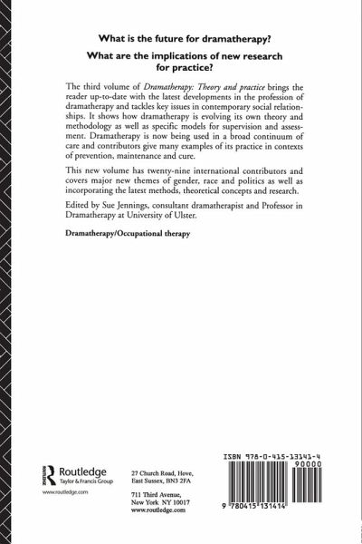 The third volume of Dramatherapy: Theory and Practice brings the reader up-to-date with the latest developments in the profession of dramatherapy and tackles key issues in contemporary social relationships. It shows how dramatherapy is evolving its own theory and methodology as well as specific models for supervision and assessment. Dramatherapy is now being used in a broad continuum of care and contributors give many examples of its practice in contexts of prevention, maintenance and cure. * Incorporates method, theoretical concepts and latest research * Covers major new themes of gender, race and politics * 29 international contributors