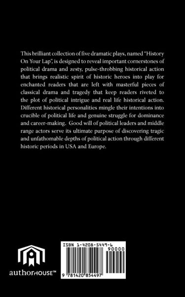 This brilliant collection of five dramatic plays, named "History On Your Lap", is designed to reveal important cornerstones of political drama and zesty, pulse-throbbing historical action that brings realistic spirit of historic heroes into play for enchanted readers that are left with masterful pieces of classical drama and tragedy that keep readers riveted to the plot of political intrigue and real life historical action. Different historical personalities mingle their intentions into crucible of political life and genuine struggle for dominance and career-making. Good will of political leaders and middle range actors serve its ultimate purpose of discovering tragic and unfathomable depths of political action through different historic periods in USA and Europe.