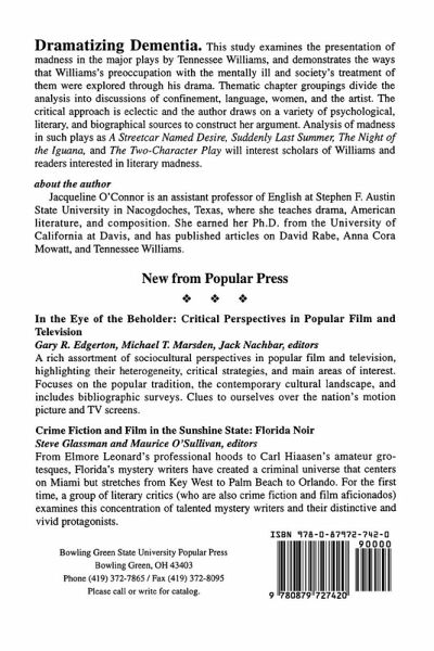 Jacqueline O'Connor examines how Tennessee Williams portrayed society's treatment of the mentally ill. The critical approach is eclectic and the author draws on a variety of psychological, literary, and biographical sources.