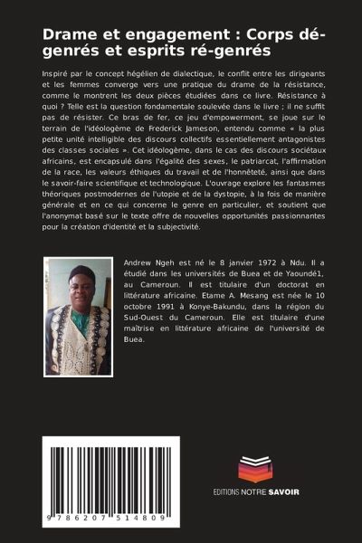 Inspiré par le concept hégélien de dialectique, le conflit entre les dirigeants et les femmes converge vers une pratique du drame de la résistance, comme le montrent les deux pièces étudiées dans ce livre. Résistance à quoi ? Telle est la question fondamentale soulevée dans le livre ; il ne suffit pas de résister. Ce bras de fer, ce jeu d'empowerment, se joue sur le terrain de l'idéologème de Frederick Jameson, entendu comme « la plus petite unité intelligible des discours collectifs essentiellement antagonistes des classes sociales ». Cet idéologème, dans le cas des discours sociétaux africains, est encapsulé dans l'égalité des sexes, le patriarcat, l'affirmation de la race, les valeurs éthiques du travail et de l'honnêteté, ainsi que dans le savoir-faire scientifique et technologique. L'ouvrage explore les fantasmes théoriques postmodernes de l'utopie et de la dystopie, à la fois de manière générale et en ce qui concerne le genre en particulier, et soutient que l'anonymat basé sur le texte offre de nouvelles opportunités passionnantes pour la création d'identité et la subjectivité.