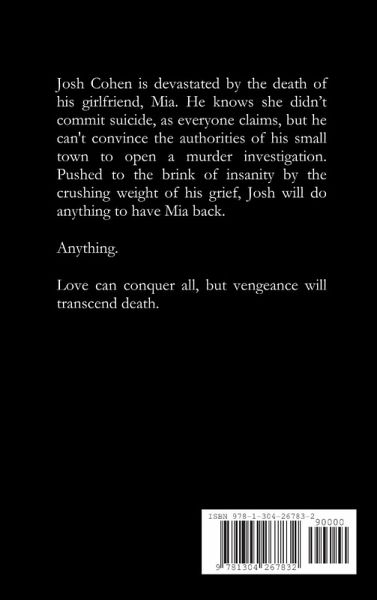Josh Cohen is devastated by the death of his girlfriend, Mia. He knows she didn't commit suicide, as everyone claims, but he can't convince the authorities of his small town to open a murder investigation. Pushed to the brink of insanity by the crushing weight of his grief, Josh will do anything to have Mia back. Anything. Love can conquer all, but vengeance will transcend death.