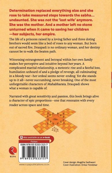 The life of a princess raised by a loving father and three doting brothers would seem like a bed of roses to any woman. But born out of sacred fire, Draupadi is no ordinary woman, and her destiny cannot be to walk the beaten path. Witnessing estrangement and betrayal within her own family makes her perceptive and intuitive beyond her years. A complicated marital relationship, a meteoric rise and a fateful loss, humiliation unheard of and a pledge of revenge, all culminating in a bloody warher o