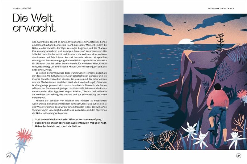 Das Glück liegt draußen: Erfahre mehr über die Natur, über Achtsamkeit und dich selbstStressabbau in der Natur: Das Buch hilft dir, durch unterschiedlichste Naturerfahrungen deine innere Ruhe zu findenSchenke Achtsamkeit: Mache andere glücklich, indem du mehr Achtsamkeit in ihr Leben bringst - oder beschenke ganz einfach dich selbst Bezauberndes Design: Schöne Illustrationen und eindrucksvolle Fotografien lassen dich noch tiefer in die Welt da draußen eintauchen