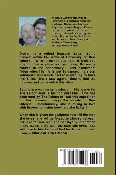 Draven is a treasure hunter hiding within the walls of the University of New Orleans. Beauty is a hired assassin that works for The Falcon. Falling in love could be dangerous. When The Falcon puts a hit on the man she loves, she must choose between her loyalty for one man and her love for another. If she chooses a life with Draven, she will be forced to bite the hand that feeds her. All this while they search through New Orleans and the neighboring city of Abita Springs for a treasure worth in excess of $8 million dollars in today's market