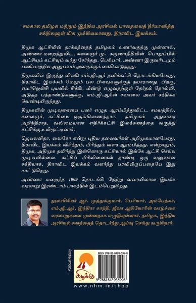திமுக ஆட்சியின் தாக்கத்தைத் தமிழகம் உணர்வதற்கு முன்னால், அண்ணா மறைந்துவிட, கலைஞர் மு. கருணாநிதியின் பொறுப்பில் ஆட்சியும் கட்சியும் வந்து சேர்ந்தது. பெரியார், அண்ணா இருவரிடமும் பணியாற்றிய அனுபவம் அவருக்குக் கைகொடுத்தது.திமுகவில் இருந்து விலகி எம்.ஜி.ஆர் தனிக்கட்சி தொடங்கியபோது, திராவிட இயக்கம் மேலும் பல பிளவுகளுக்குத் தயாரானது. பிறகு, எமர்ஜென்சி புயலில் சிக்கி, மீண்டு எழுவதற்குள் தேர்தல் தோல்வி. அடுத்த பத்தாண்டுகளுக்கு, எம்.ஜி.ஆரின் சவாலை அவர் சந்திக்கவேண்டியிருந்தது.திமுகவின் முடிவுரையை பலர் எழுத ஆரம்பித்துவிட்ட சமயத்தில், கலைஞர், கட்சியை ஒருங்கிணைத்தார். தமிழகம் அதுவரை அறிந்திராத, வலிமையான எதிர்க்கட்சி இலக்கணத்தை வகுத்து கட்சிக்கு உயிரூட்டினார்.ஜெயலலிதா, வைகோ என்று புதிய தலைவர்கள் அறிமுகமான-போது, திராவிட இயக்கம் விரிந்தும், பிரிந்தும் வளர ஆரம்பித்தது. என்றாலும், திமுக, அதிமுக தவிர்த்து இன்னொரு கட்சியால் இங்கே ஆட்சி செய்ய முடியவில்லை. கட்சிப் பிரிவினைகள் தாண்டி ஒரு வலுவான சக்தியாக, திராவிட இயக்கம் வளர்ந்து பரவியிருப்பதையே இது காட்டுகிறது. அண்ணா மறைந்த 1969 தொடங்கி நேற்று வரையிலான இயக்க வரலாறு இரண்டாம் பாகத்தில் இடம்பெறுகிறது.