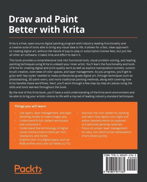 Master the art of digital painting with the help of this full-color guide by learning how to implement blending layers, as well as use brushes, color wheels, and techniques using the power of the free tools provided by Krita Key Features:Unlock the powerful tools offered by Krita to create customizable UIs Discover useful tips, tricks, and hacks to build compelling designs and speed up your digital workflow Learn how to use the brush tool and manage colors to create beautiful artwork Book Description: Krita is a free, open-source digital painting program with industry-leading functionality and a creative suite of tools able to bring any visual idea to life. It allows for a fast, clean approach to creating digital art, without the hassle of pay-to-play or subscription license fees, but just like all other art software, it takes time and effort to learn it. This book provides a comprehensive look into functional tools, visual problem-solving, and leading painting techniques using Krita to unleash your inner artist. You'll learn the functionality and tools of Krita for creating digital and print-quality work as well as explore manipulation toolsets, custom brush creation, overviews of color spaces, and layer management. As you progress, you'll get to grips with 'key styles' needed to make professional-grade digital art, through techniques such as photobashing, 3D paint-overs, and more traditional painting methods, along with covering how Krita handles these workflows. Next, you'll work through a few step-by-step art pieces using the skills and tools learned throughout the book. By the end of this Krita book, you'll have a solid understanding of the Krita work environment and be able to bring your artistic visions to life with a myriad of leading industry-standard techniques. What You Will Learn:Use layers, layer management, and layer blending modes to make images pop Understand Krita's default workspace and customize it Understand the terminology of digital visual communication (dots per inch, resolution, and more) Explore color in a digital space, such as RGB profiles and Look-Up-Tables (LUTS) Discover the color wheel for painting and learn how digital color (light and alpha channels) works as opposed to traditional painting materials Focus on proper layer management for easy, non-destructive manipulation of art pieces quickly Who this book is for: If you're an artist wanting to take your artwork and portfolio to a professional level, then this book is for you. You'll need some experience using art creation software (ideally Krita, Photoshop, or Clip Studio Paint) before you jump in, but beginners willing to use external sources to keep up will find plenty of useful information. Artists looking to upgrade their skills for work in the entertainment industry will benefit the most from this digital art book.