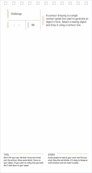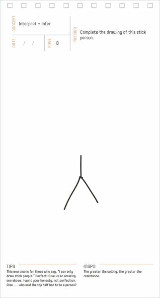 A 100-day journal that will not only improve your drawing skills, but ignite creativity in all areas of your life. Boost your creative confidence in any field by exercising your artistic muscle in the most elemental way: drawing—a form of expression, visual language, and idea generation. Everyone has the ability to draw, contrary to popular belief. Your unconscious mind is always working at taking in content and making new associations. In this unique sketch journal, creativity expert Caleb Robertson helps you tap into that trove of inspiration by guiding you through 100 days of engaging and thought-provoking exercise prompts. The exercises are divided into four categories: thinking-outside-the-box challenges, personal interpretation, comparing and contrasting elements, and perception. Each page also includes a tip to help you if you get stuck, and an “inspo” takeaway to keep you motivated and self-aware. You don't need perfect technique or an art degree to gain the benefits of a daily drawing practice!
