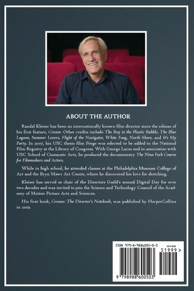 For many decades, film director Randal Kleiser (Grease, The Blue Lagoon, White Fang) has been drawing sketches of other fellow directors using a technique called blind contour drawing, where you trace the lines of the subject with your eye and simultaneously draw with a pen on the paper without looking down. The difficulty was that the subjects moved or changed positions in mid-sketch and many of the attempts were thrown away. This is a collection of the ones that worked. With a foreword by Roger Corman, Drawing Directors pays tribute to Kleiser's favorite directors, including Steven Spielberg, John Singleton, Ron Howard, Guillermo del Toro, Robert Wise, and Billy Wilder. The author recounts their professional career and reveals anecdotes about them and his personal opinion about their work.