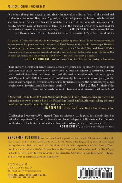 Pogrund examines the accusation that Israel is practicing apartheid and the motives of those who make it. A belief in Israel, combined with frank criticism, provides a balanced view of Israel's strengths and problems. It deconstructs the criticisms of Israel and the boycott movement before arguing for two states as the only way forward.