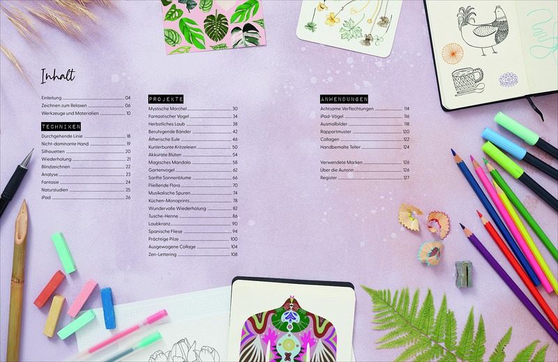 Das Ziel der Techniken und Projekte dieses Zeichen-Leitfadens ist es, Kunst zu erschaffen, die sowohl den Künstler als auch den Betrachter entspannen.