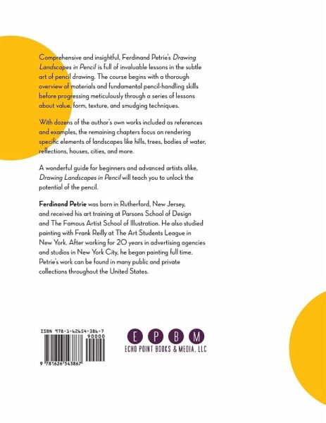 Comprehensive and insightful, Ferdinand Petrie's Drawing Landscapes in Pencil is full of invaluable lessons in the subtle art of pencil drawing. The course begins with a thorough overview of materials and fundamental pencil-handling skills before progressing meticulously through a series of lessons about value, form, texture, and smudging techniques. With dozens of the author's own works included as references and examples, the remaining chapters focus on rendering specific elements of landscapes like hills, trees, bodies of water, reflections, houses, cities, and more. A wonderful guide for beginners and advanced artists alike, Drawing Landscapes in Pencil will teach you to unlock the potential of the pencil. Ferdinand Petrie was born in Rutherford, New Jersey, and received his art training at Parsons School of Design and The Famous Artist School of Illustration. He also studied painting with Frank Reilly at The Art Students League in New York. After working for 20 years in advertising agencies and studios in New York City, he began painting full time. Petrie's work can be found in many public and private collections throughout the United States.