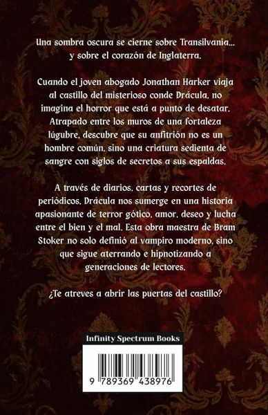 Una sombra oscura se cierne sobre Transilvania... y sobre el corazón de Inglaterra. Cuando el joven abogado Jonathan Harker viaja al castillo del misterioso conde Drácula, no imagina el horror que está a punto de desatar. Atrapado entre los muros de una fortaleza lúgubre, descubre que su anfitrión no es un hombre común, sino una criatura sedienta de sangre con siglos de secretos a sus espaldas. A través de diarios, cartas y recortes de periódicos, Drácula nos sumerge en una historia apasionante de terror gótico, amor, deseo y lucha entre el bien y el mal. Esta obra maestra de Bram Stoker no solo definió al vampiro moderno, sino que sigue aterrando e hipnotizando a generaciones de lectores. ¿Te atreves a abrir las puertas del castillo?