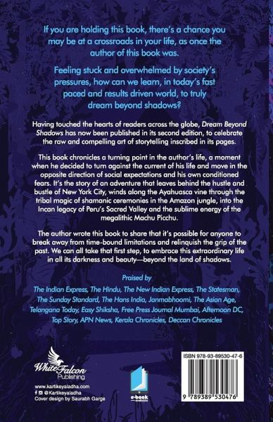 If you are holding this book, there's a chance you may be at a crossroads in your life, as once the author of this book was. Feeling stuck and overwhelmed by society's pressures, how can we learn, in today's fast paced and results driven world, to truly dream beyond shadows? Having touched the hearts of readers across the globe, Dream Beyond Shadows has now been published in its second edition, to celebrate the raw and compelling art of storytelling inscribed in its pages. This book chronicles a turning point in the author's life, a moment when he decided to turn against the current of his life and move in the opposite direction of social expectations and his own conditioned fears. It's the story of an adventure that leaves behind the hustle and bustle of New York City, winds along the Ayahuasca vine through the tribal magic of shamanic ceremonies in the Amazon jungle, into the Incan legacy of Peru's Sacred Valley and the sublime energy of the megalithic Machu Picchu. The author wrote this book to share that it's possible for anyone to break away from time-bound limitations and relinquish the grip of the past. We can all take that first step, to embrace this extraordinary life in all its darkness and beauty--beyond the land of shadows. Praised by The Indian Express, The Hindu, The New Indian Express, The Statesman, The Sunday Standard, The Hans India, Janmabhoomi, The Asian Age, Telangana Today, Easy Shiksha, Free Press Journal Mumbai, Afternoon DC, Top Story, APN News, Kerala Chronicles, Deccan Chronicles