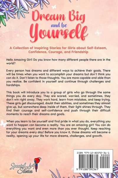 Hello Amazing Girl! Do you know how many different people there are in the world? Every person has dreams and different ways to achieve their goals. There will be times when you want to accomplish your dreams but don't think you can do it. Don't listen to those thoughts. You are more capable and able than you realize. Be confident in yourself and continue through challenges and hardships. This book will introduce you to a group of girls who go through the same things you do every day. They are scared, worried, and sometimes, they don't win right away. They work hard, learn from mistakes, and keep trying. These girls get discouraged, doubt their abilities, and sometimes they almost give up, but somewhere deep inside of them, their light shines through. They find their courage and self-confidence and push through their difficult moments to reach their dreams and goals. When you learn to be yourself and find pride in what you do, everything you want to happen can become a reality. You are an amazing girl! You can do everything you want and even more than you ever thought. Keep reaching for your dreams every day! Before you know it, those dreams will become a reality, opening up your life for more dreams, challenges, and growth. What you will find in this book: 10 Inspiring Stories for Girls about Self-Esteem, Confidence, Courage, and Friendship A simple and engaging writing style suitable for both shared and independent reading Identification with the characters, who, although fictional, are always combined with themes from children's real lives Beautiful images to accompany the reading and stimulate the imagination Morals and Messages of Life with reflections and involvement in the narrative Girls love this book and it helps them to: Believe in their dreams Develop confidence in themselves and their abilities Cope better with difficult situations Understand the importance of relationships with parents and friends Never give up and do not be discouraged by small failures 2 Bonus for You that you can download from the Special Art official website: Dreams Journal for Kids (PDF) Motivational Phrases Coloring Book for Kids (PDF) Click on "buy now" and help a girl never stop dreaming and believing in herself! (A Perfect Gift Idea)