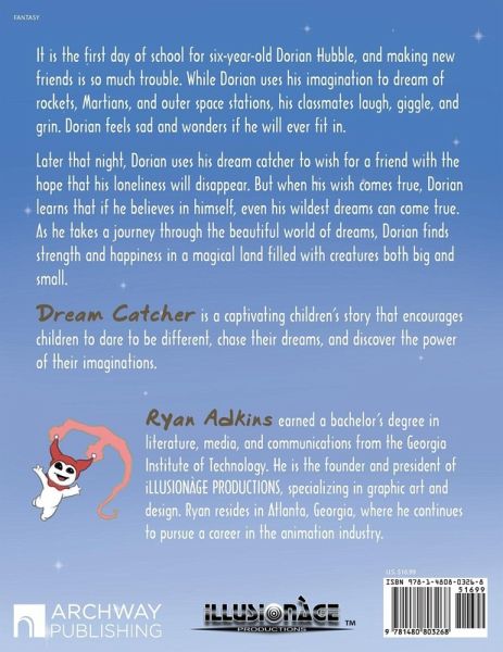 It is the first day of school for six-year-old Dorian Hubble, and making new friends is so much trouble. While Dorian uses his imagination to dream of rockets, Martians, and outer space stations, his classmates laugh, giggle, and grin. Dorian feels sad and wonders if he will ever fit in. Later that night, Dorian uses his dream catcher to wish for a friend with the hope that his loneliness will disappear. But when his wish comes true, Dorian learns that if he believes in himself, even his wildest dreams can come true. As he takes a journey through the beautiful world of dreams, Dorian finds…mehr