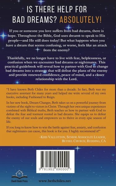 If you or someone you love suffers from bad dreams, there is hope. Throughout the Bible, God uses dreams to speak to His people-and He still does today! But what happens when you have a dream that seems confusing, or worse, feels like an attack from the enemy?Thankfully, we no longer have to live with fear, helplessness, or confusion when we encounter bad dreams or nightmares. This practical guidebook will reveal how to partner with God to change bad dreams into a strategy that will defeat the plans of the enemy and provide renewed confidence, peace of mind, and a closer relationship with the Lord.