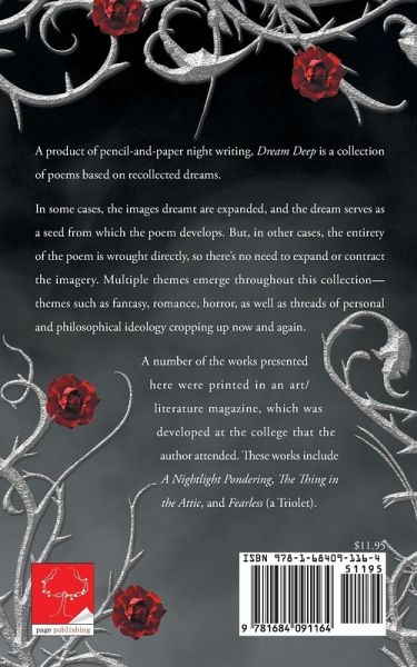 Blurb A product of pencil-and-paper night writing, Dream Deep is a collection of poems based on recollected dreams. In some cases, the images dreamt are expanded, and the dream serves as a seed from which the poem develops. But, in other cases, the entirety of the poem is wrought directly, so there's no need to expand or contract the imagery. Multiple themes emerge throughout this collection-themes such as fantasy, romance, horror, as well as threads of personal and philosophical ideology cropping up now and again. A number of the works presented here were printed in an art/literature magazine, which was developed at the college that the author attended. These works include A Nightlight Pondering, The Thing in the Attic, and Fearless (a Triolet).