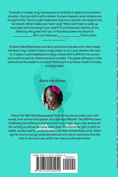 What is your IT? What makes your heart sing and your spirit leap for joy? You can live your life by default - just going along with what shows up next - or you can live your life by creating your life and living your IT. Felicia the GEM Parker has explained how to create a fulfilling and extraordinary life by developing then working your plan until your IT manifests in her latest release, Dream Girl! A Woman's Guide To Living Her Dream In 3 Easy Steps. Dream Girl! is GPS for the woman who wants to see her dreams become a reality. Dream Girl! is all about action. Three easy steps are all it takes. These easy-to-follow three will earn you the inside and the outside of success: the spiritual understanding about the truth of your being and the assistance for fulfilling your capabilities.It will also give you the tools and power you need to get rid of the excuses for not doing so.
